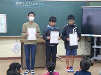 また、図書室の本を年間を通してたくさん読んだ多読賞等の最後の表彰があり、一年間のまとめができました。