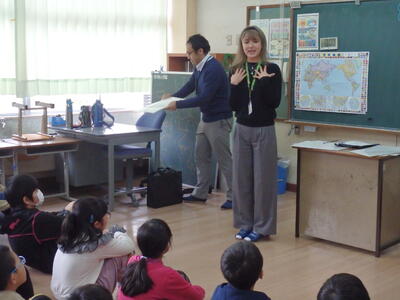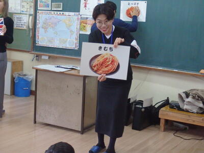 今日の4・5時間目に「国際交流員と遊ぼう」がありました。