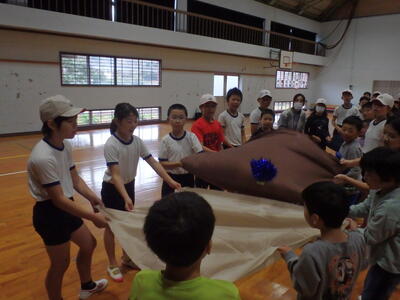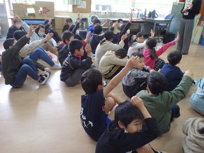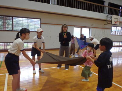 5時間目は体育館で、各国の遊びを教えてくださいました。