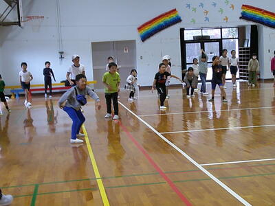 前日からの雨で、あいにくの校内遠足となりましたが、体育館で楽しいレクリエーションが