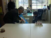 6年生が給食時に校長室、3・4年教室、1・2年教室、職員室へ出向き、一緒に給食を食べるのです。先週から4日に分けて行いました。