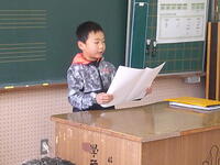 校長先生から、今年頑張ったことのお話があり、「旅立ちの日に」の歌のプレゼントが