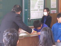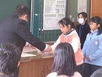 先週、高千穂町の福士保険課より、田原小の6年生にユネスコエコパークしおり贈呈式が行われました。