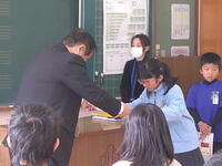 卒業生は卒業証書を一人一人受け取りますが、在校生は学年の代表児童に校長先生から修了証が渡されました。