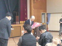 教育長から贈呈され、少し緊張気味でしたが、しっかりとお礼を言って受け取りました。