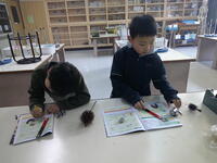 5時間目に、1・2年生が生活科で「昔の遊び」を行いました。