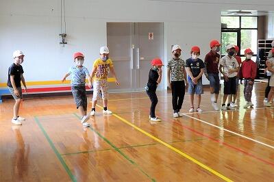 まずは、保健体育委員と6年生が、かけ声と振り付けを教えました。