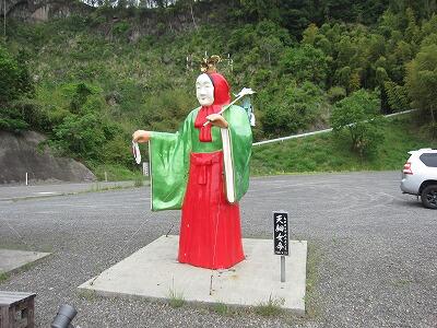 河内郷大橋の高森側の方に地元の人たちが「人形広場」と呼んでいる広場があります。ここには、高千穂に来られる方々を歓迎するかのような、大きな人形が飾られています。一つは、天鈿女命(あめのうずめのみこと)そして、もう一つは手力男神(たぢからおのかみ)です。