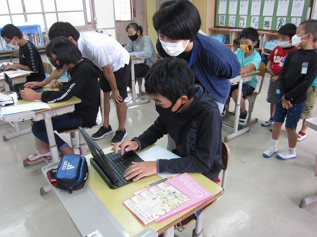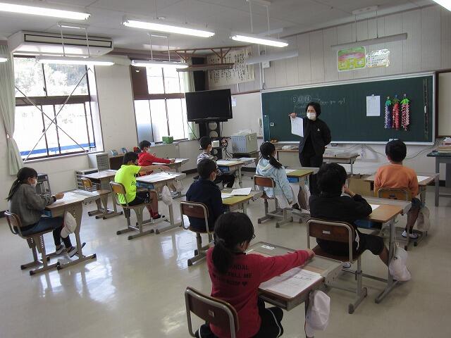 教頭先生と算数の授業をしています。解き方について真剣に話し合っていました。