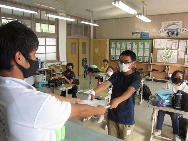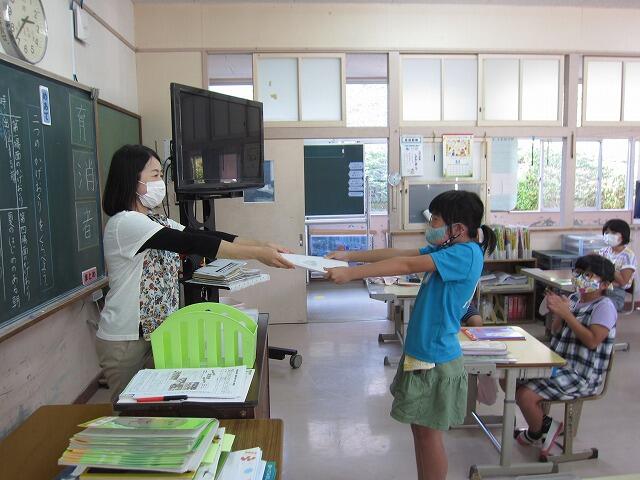 1学期の締めくくり 担任の先生から通知表をいただいています。