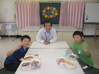 今日の給食は、5月生まれのみなさんと会話したり放送を聴いたりしながら楽しい時間を過ごしました。