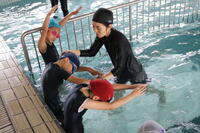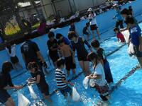 西臼杵漁業協同組合の皆様のご協力のもと、学校のプールを使用して、ヤマメを捕まえる活動です。