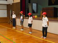 ボールを2つ使い、「火の玉」は1年生から3年生のみ触れて、ふつうのボールはだれでも触れるルールです。