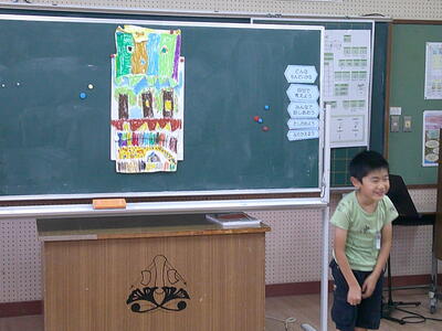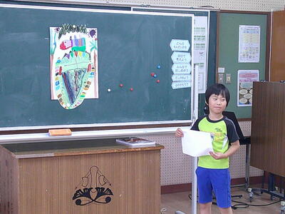 最初に、5年生の児童の作文発表があり、1学期の思い出と、2学期の目標につ