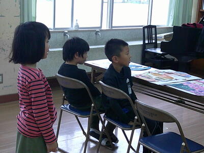 一番は、歌のお兄さん風の歌い方、二番はオペラ風の脚色で、校長先生の見事な歌に子どもたちも目をキラキラ輝かせていました。