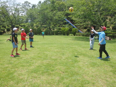 梅雨の中ですが、みんなで運動すると楽しいですね。
