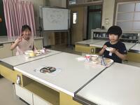今回は、4月生まれの二人が参加し、誕生日を祝いながら、家庭科室で楽しくランチをしました。