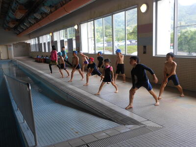 田原小学校は、全児童30名で、町プールにバスを出していただいて、