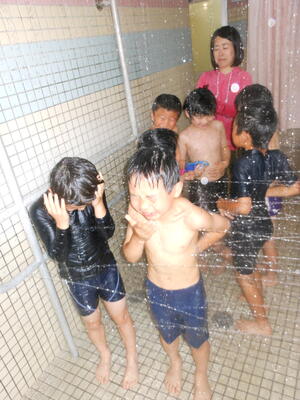 ゴーグルをしたまま寝てしまった児童もいるぐらいで、温かいシャワー