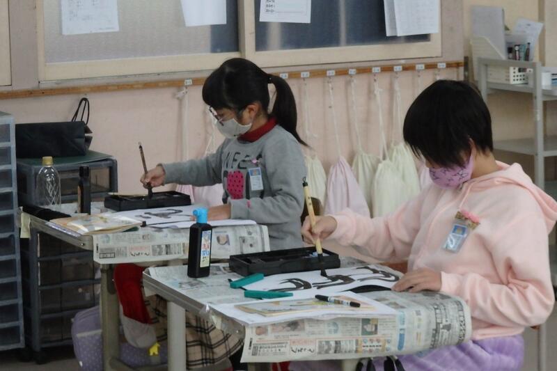 3年生が、毛筆で習字をしています。
