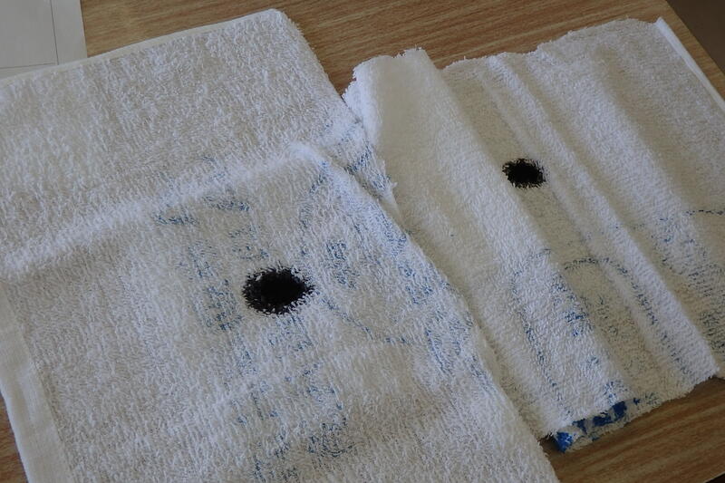 「墨汁」は、「重曹」をつけて「ブラシでこする」と、きれいになるはず…。