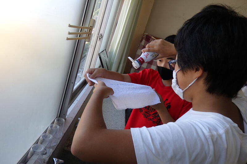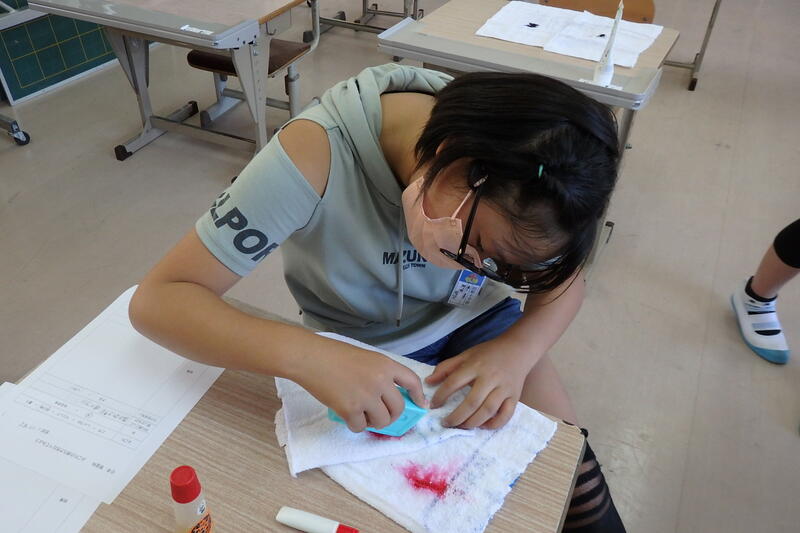 どの成分が最もよごれを落とすのか、自分たちの「仮説」に基づき、実験しました。