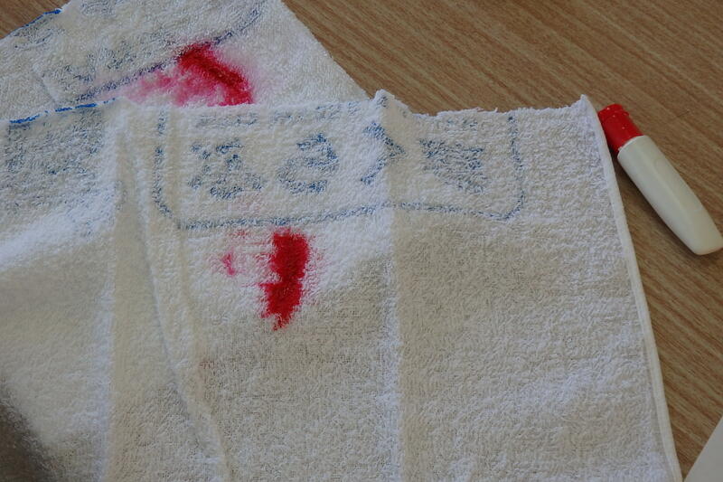 「絵の具」は、「固形石けん」で落ちるはず…。