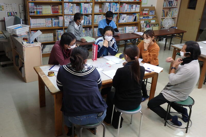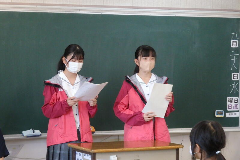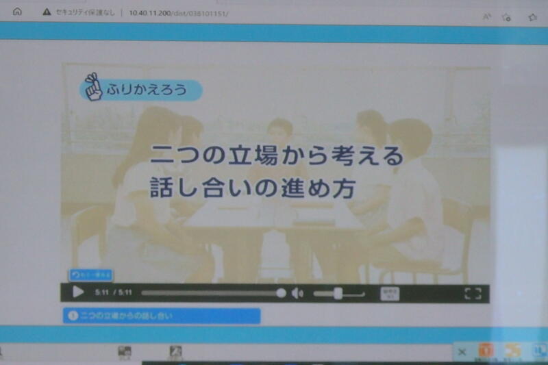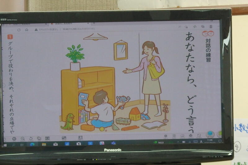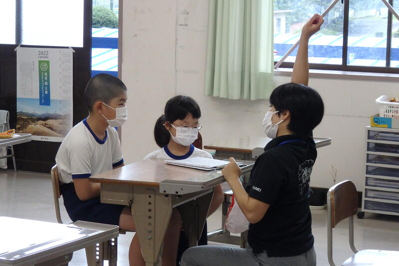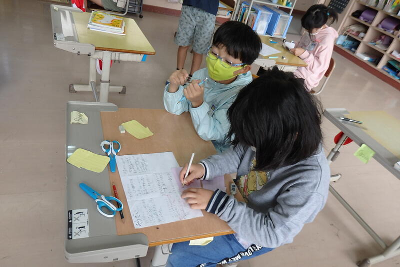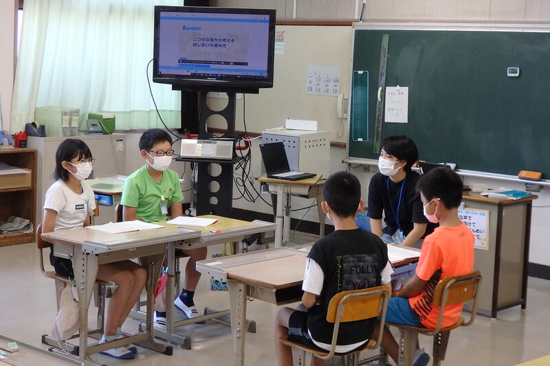 まわりの児童が、二人の会話を聞いて、どんな対話をすればよいか考えています。