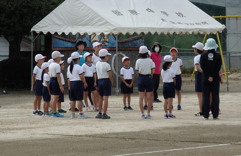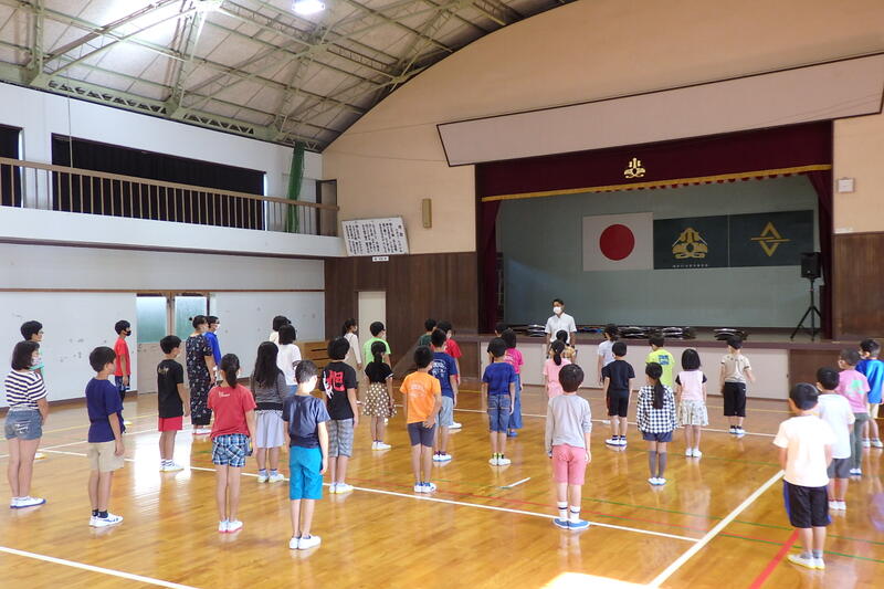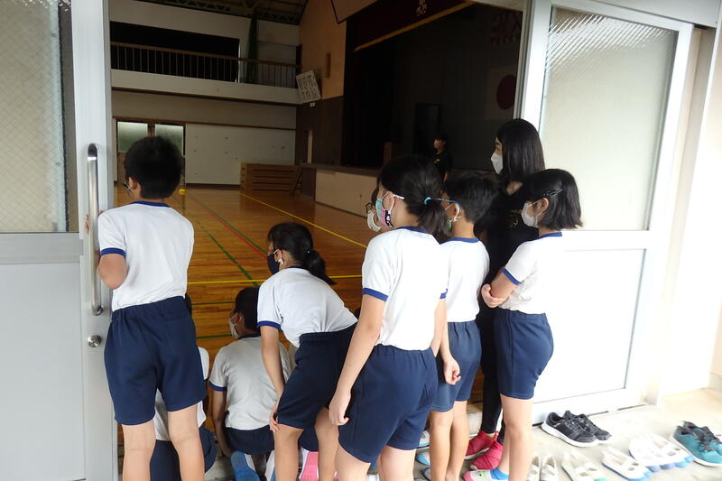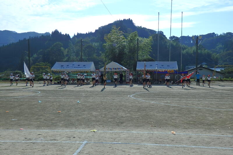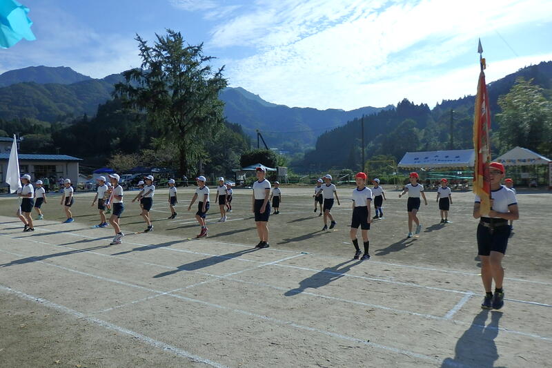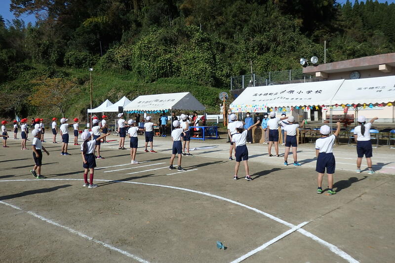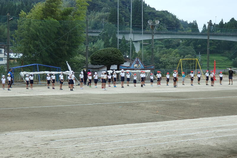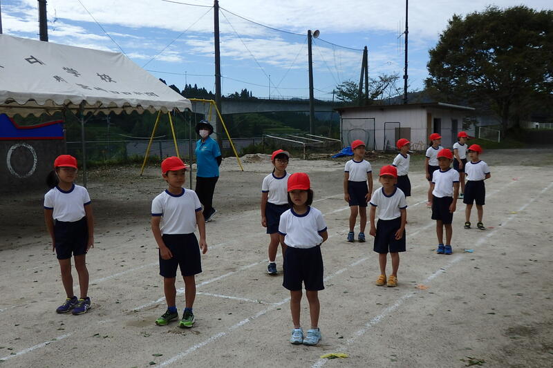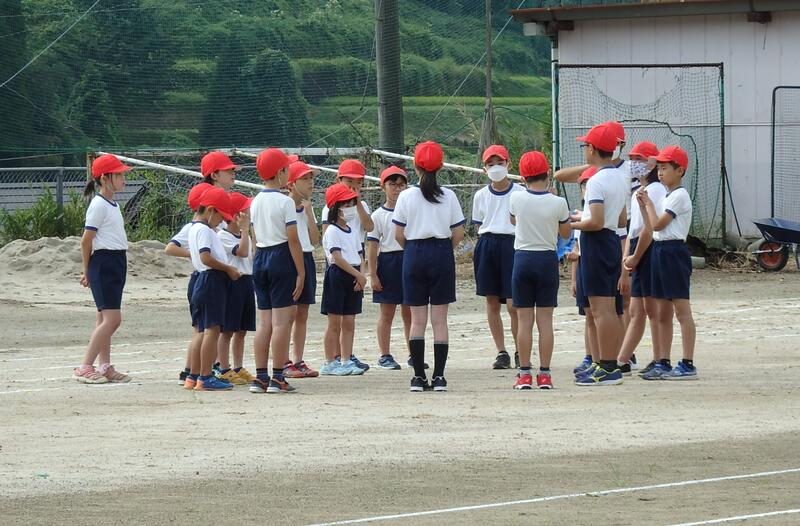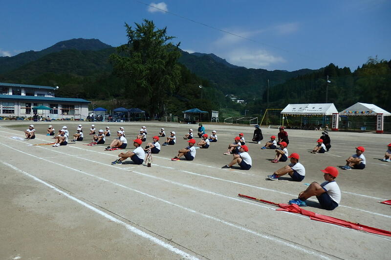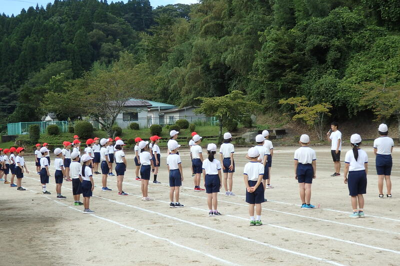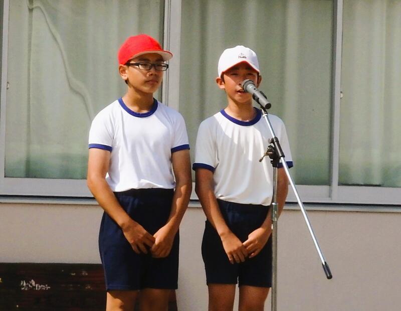 運動会の本番に向けて、4年生以上の役員が、練習をしていました。