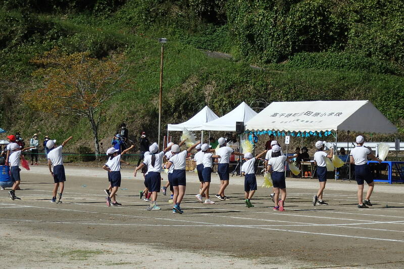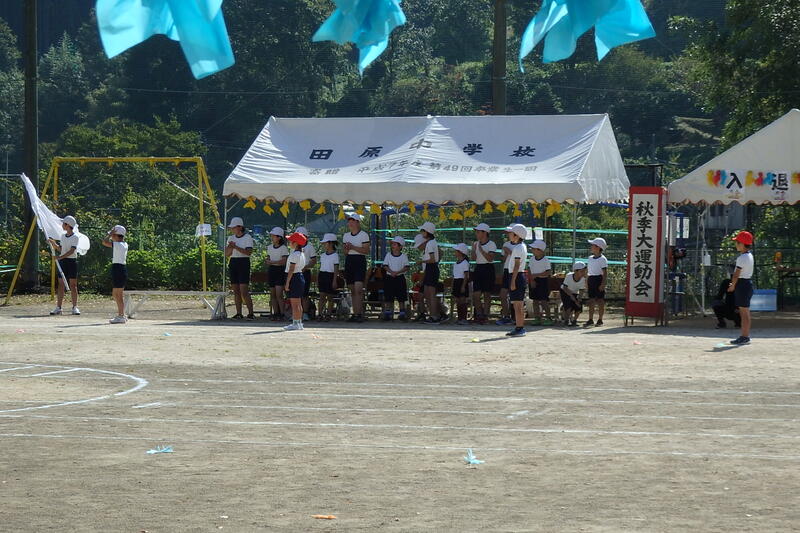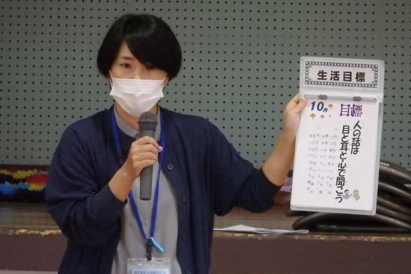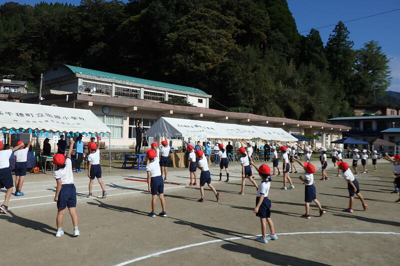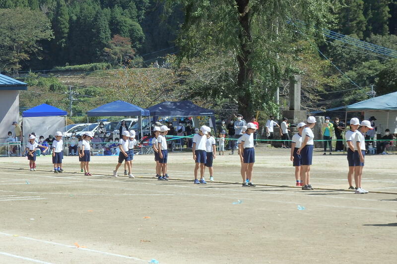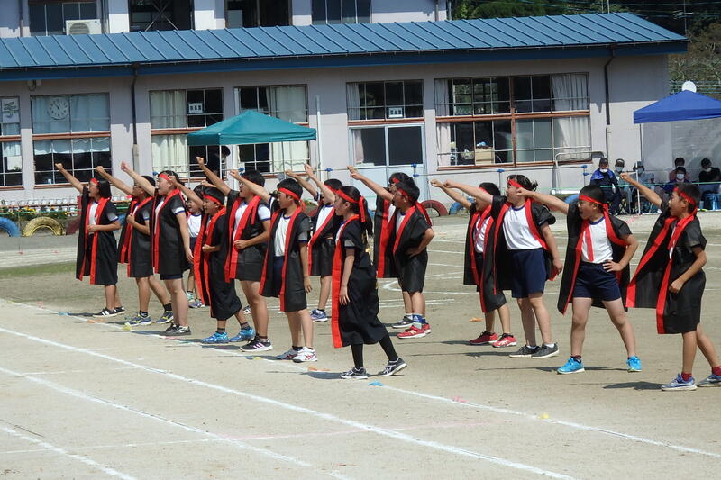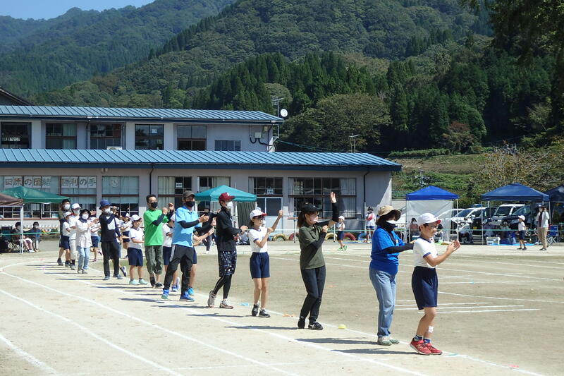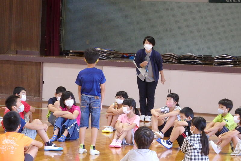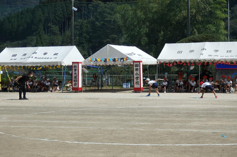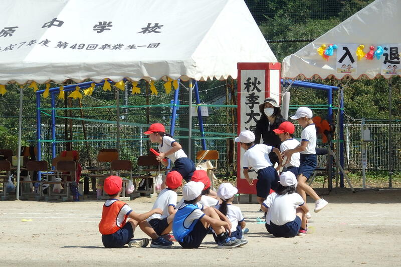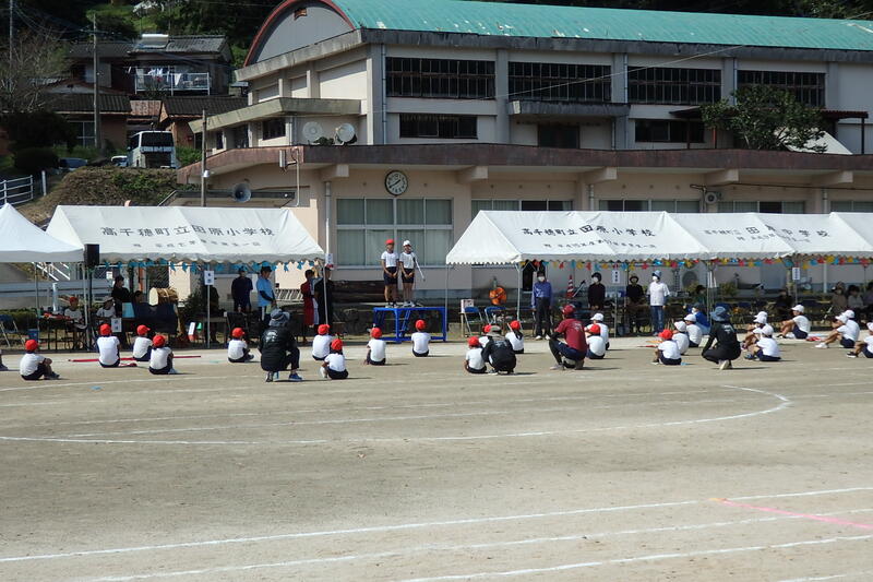 運動会の本番に向けて、4年生以上の役員が、練習をしていました。