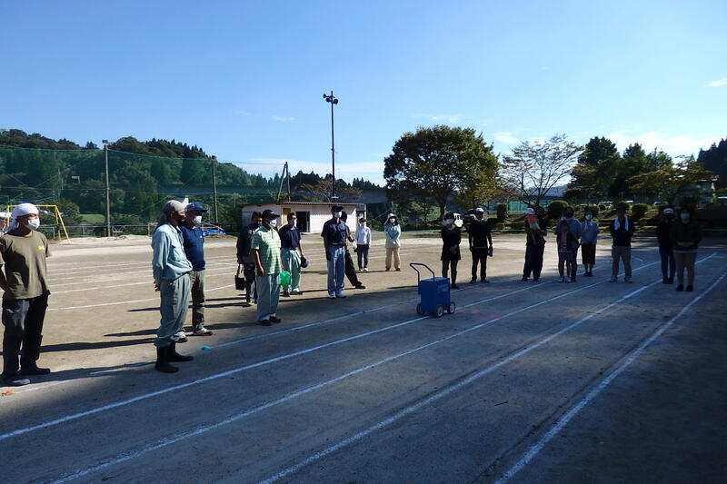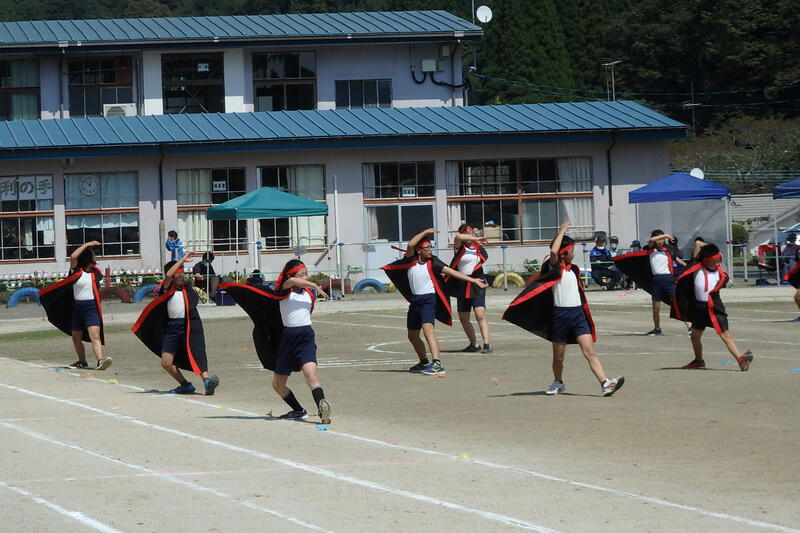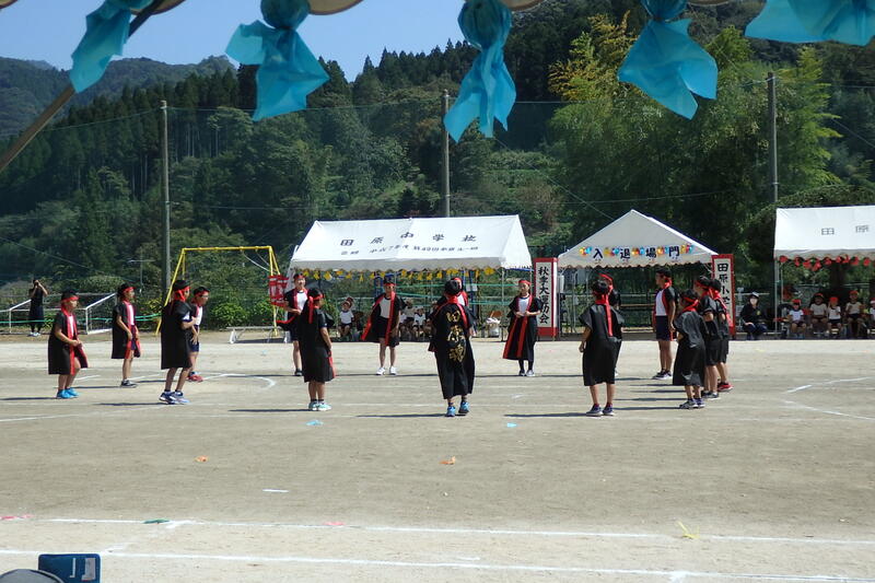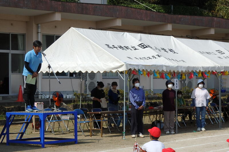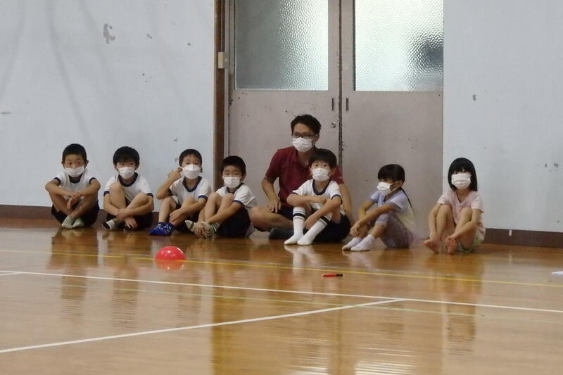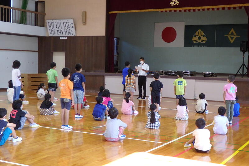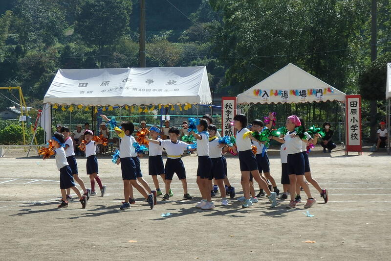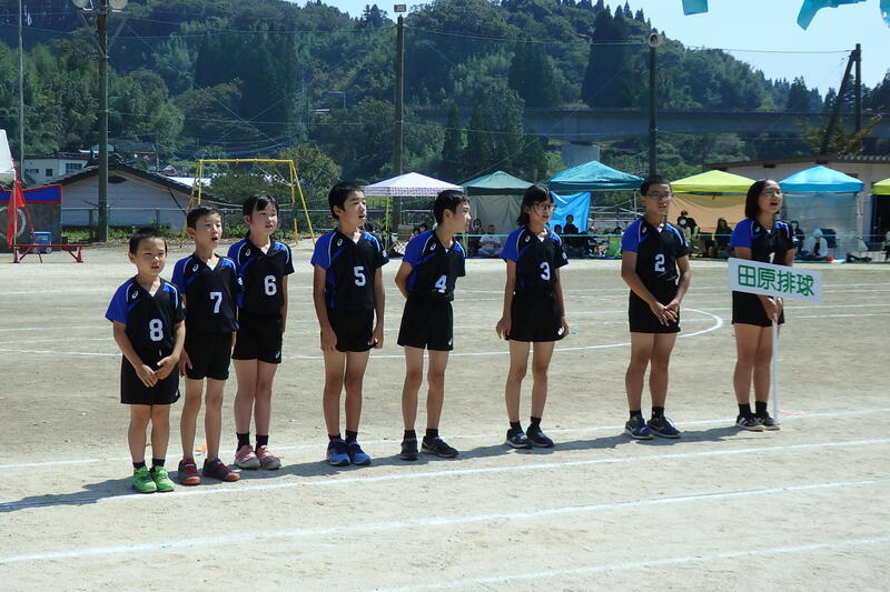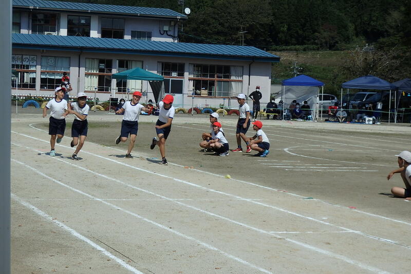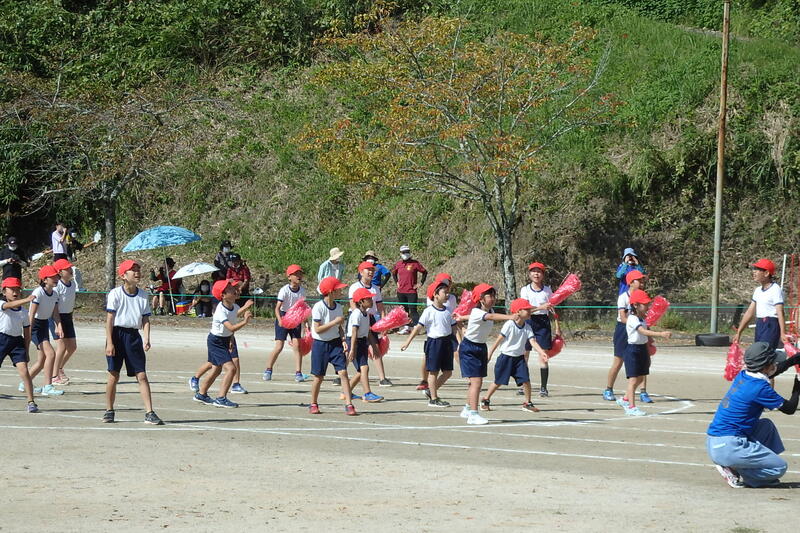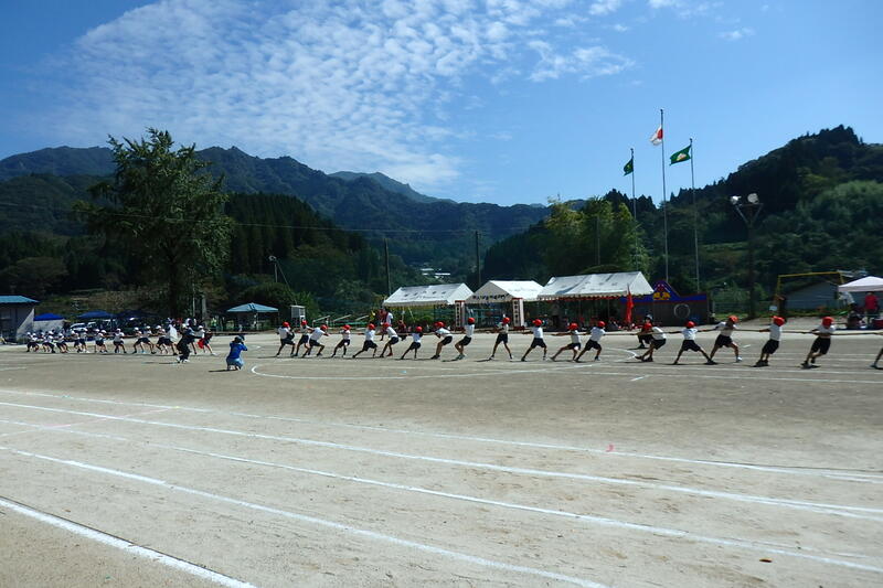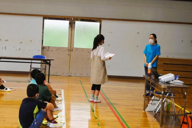 運動会の本番に向けて、4年生以上の役員が、練習をしていました。