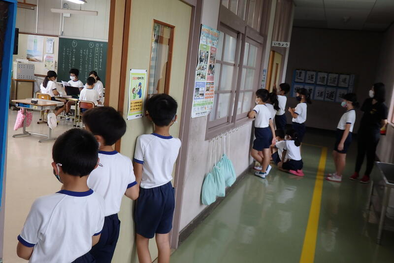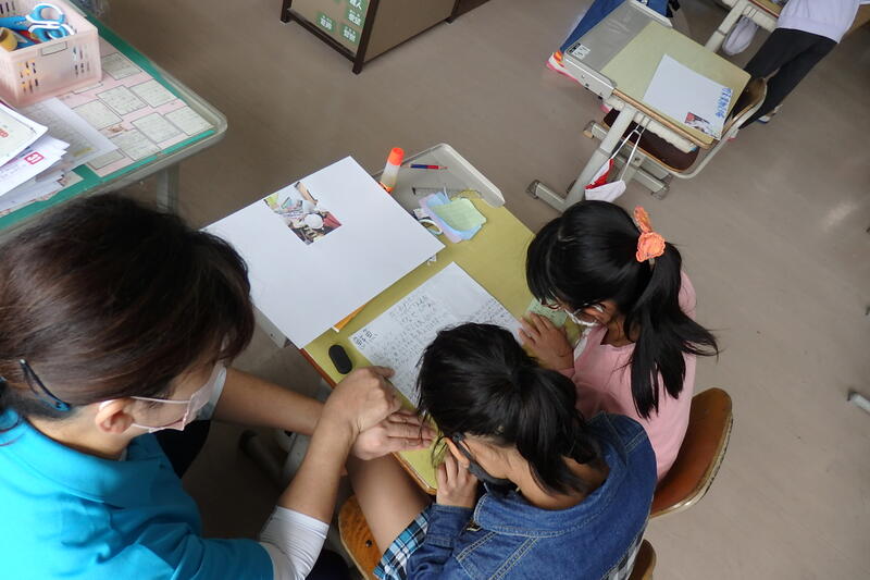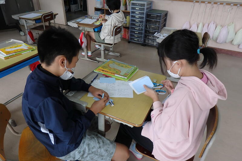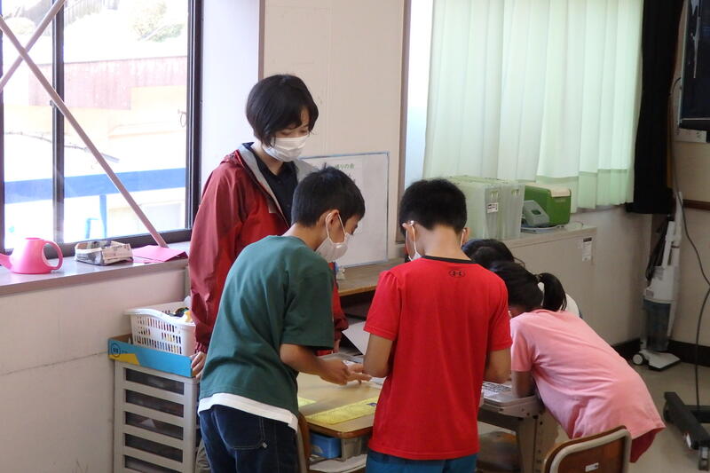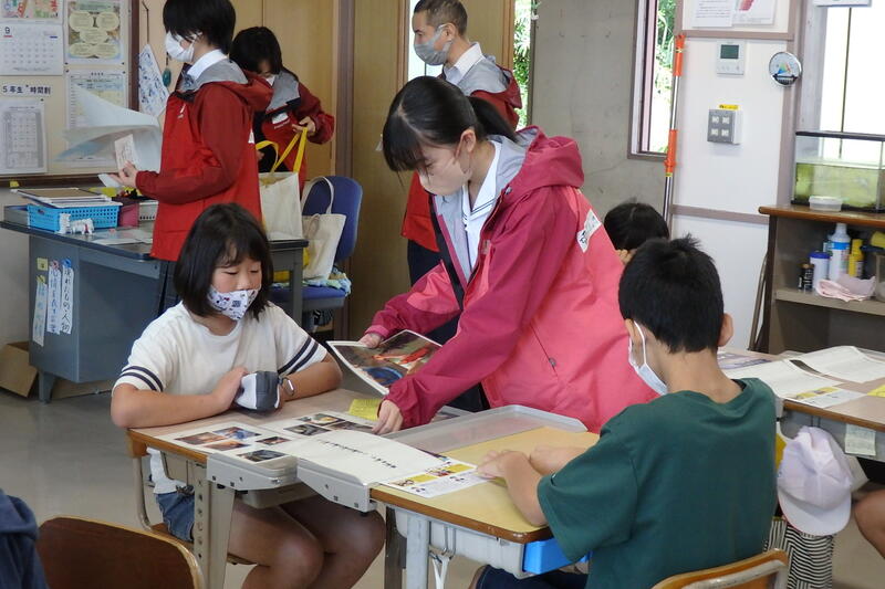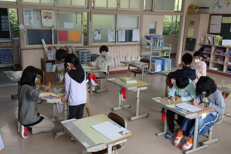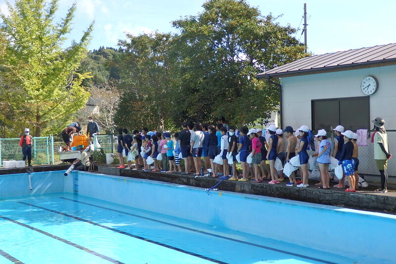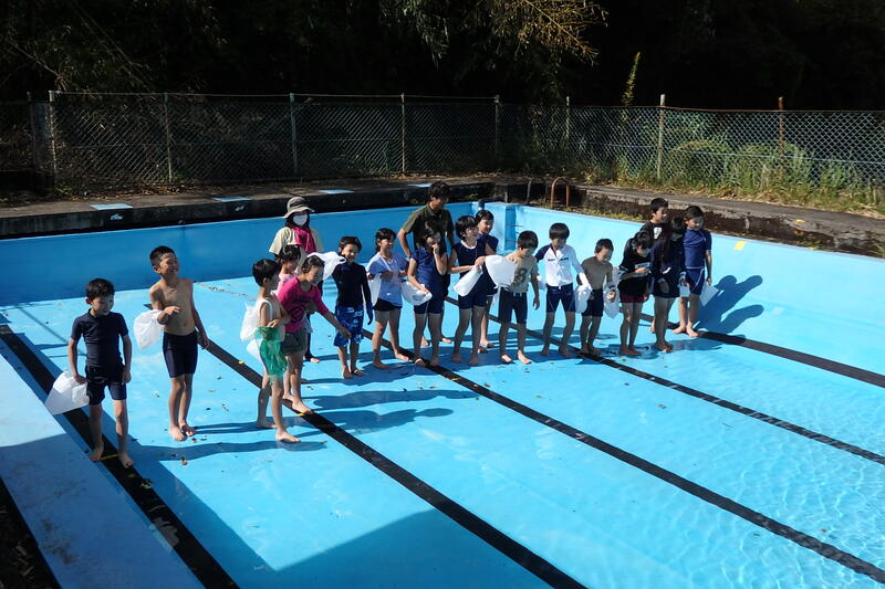 5年生が、1年生に魚をとってあげるなど、上級生が下級生に優しくする姿が、数多く見られました。