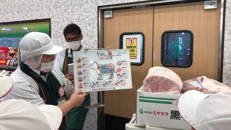 お店で売られている肉の部位を説明してくださいました。高千穂牛も売られていました。