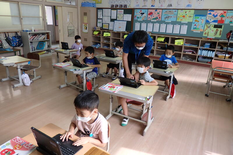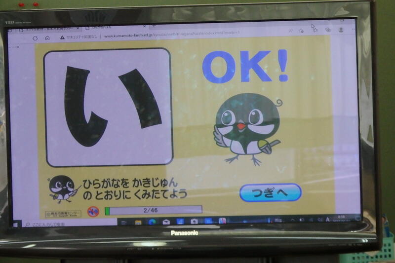 今回は、熊本市教育センターのデジタル教材「ひらがなパズル」を活用させていただきました。