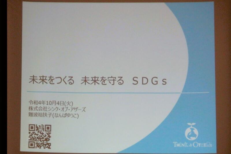 株式会社シンク・オブ・アザーズの難波 裕扶子様を講師に迎え、SDGsに関するお話をしていただきました。