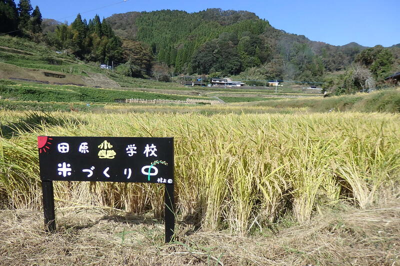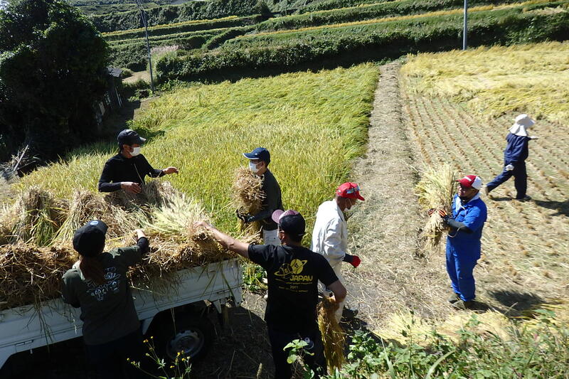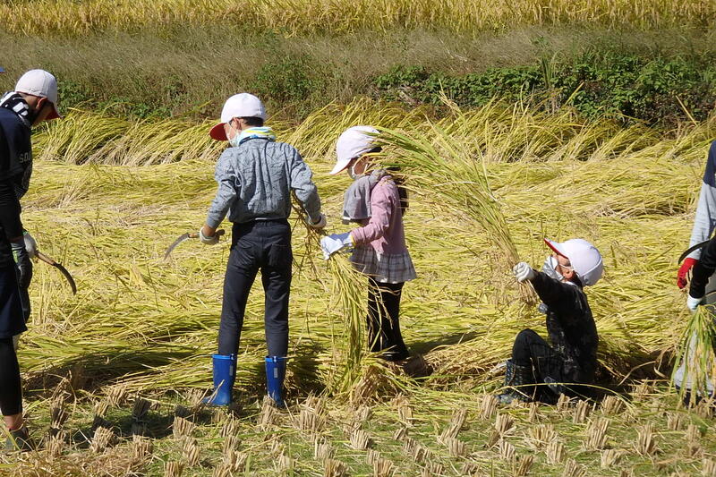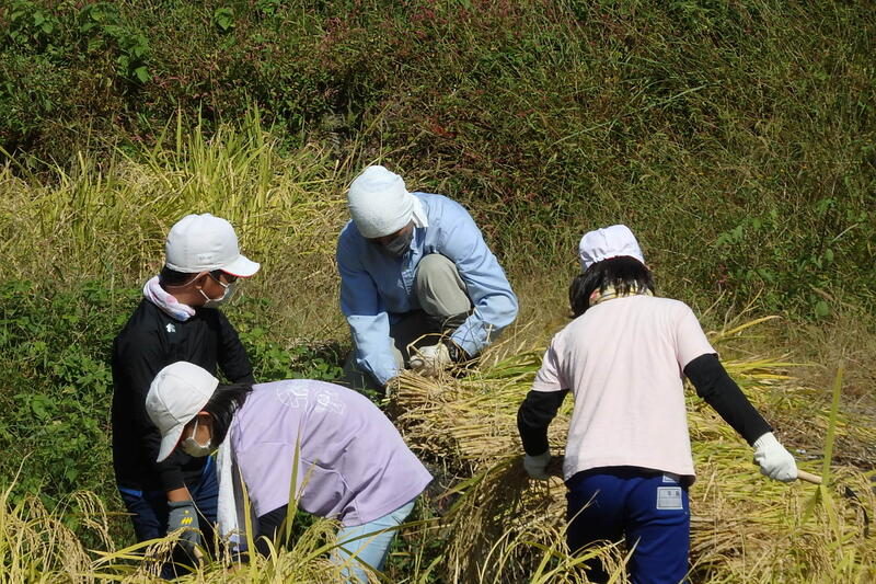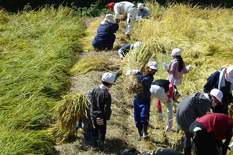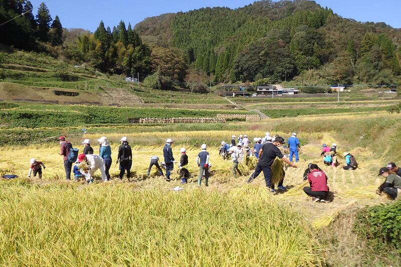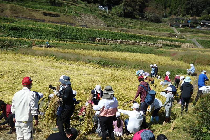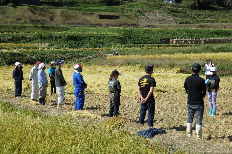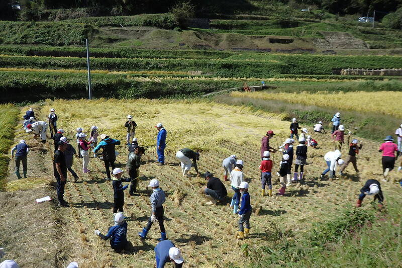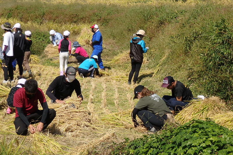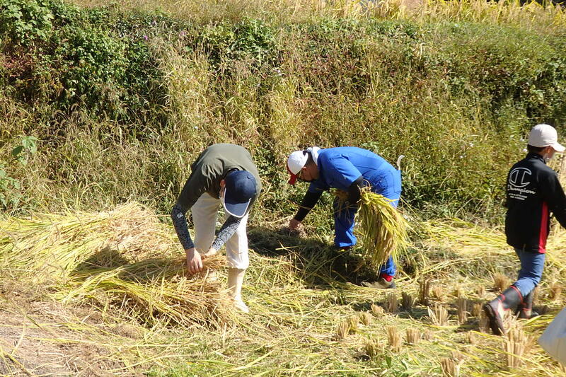 晴天のもと、世界農業遺産の地で、稲刈りをしました。