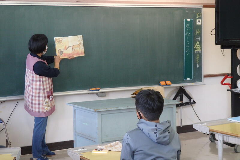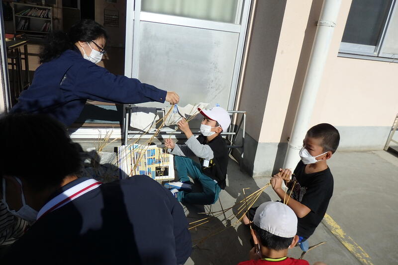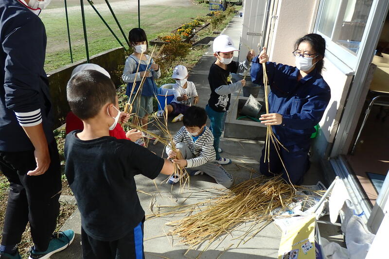 先日の稲刈りにちなんだ本をもとに、体験活動をしました。