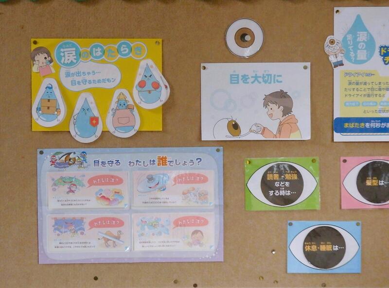 「からだグングンコーナー」には、目を守る情報がたくさん掲示されています。