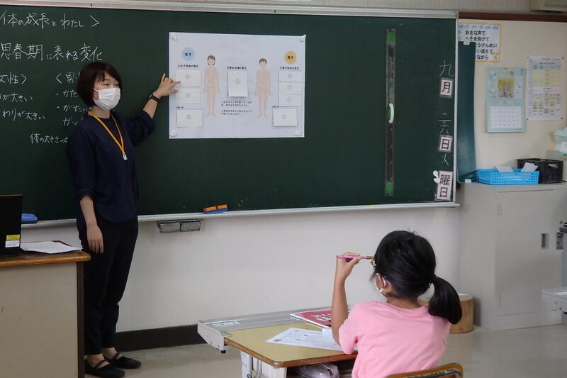 詳しい資料を使って、思春期に表れる体の成長や変化について学びました。