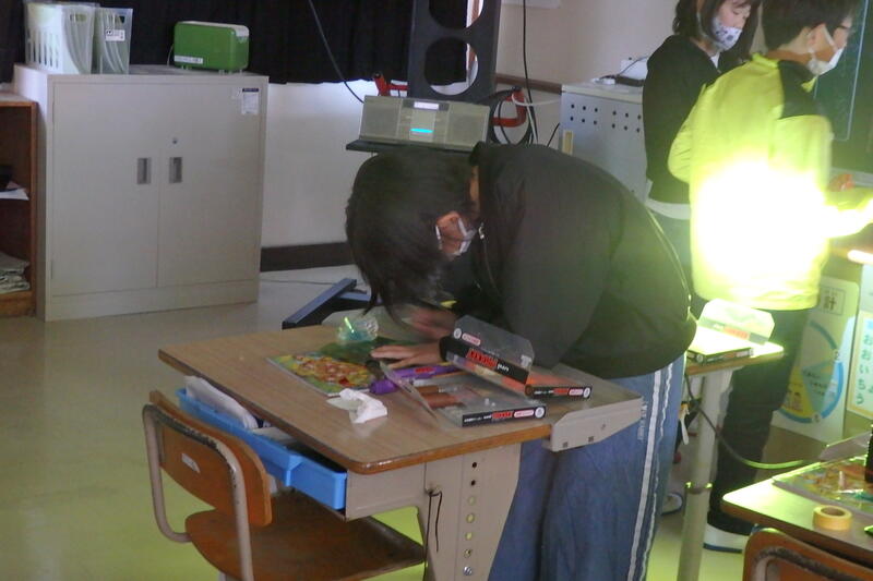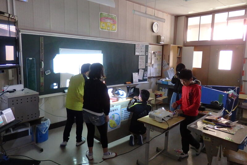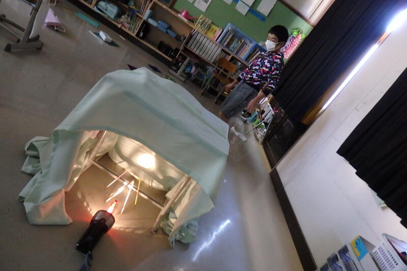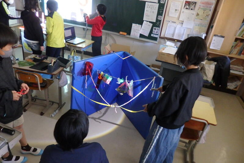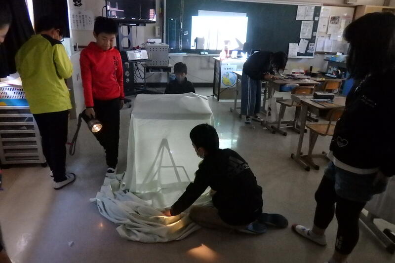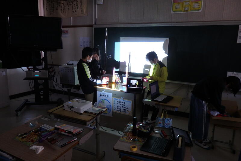 4・5年生の教室では、部屋を暗くして何かしています…。