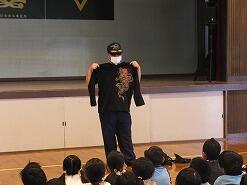 その後、体育館で安全な逃げ方、身の守り方等を河内駐在所の方に詳しく教えていただきました。