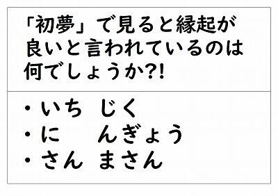 初夢で縁起が良いとされるのは、上の3つでしたっけ?!