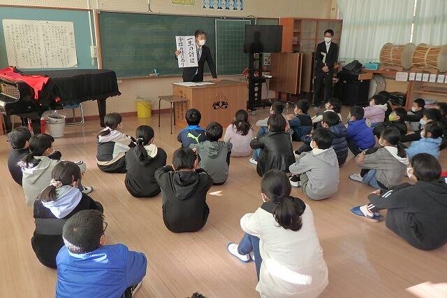 校長先生は、「郷土の偉人 安井息軒」の「三計の教え」をもとに話をされました。