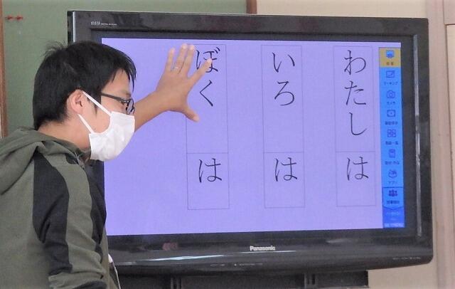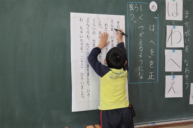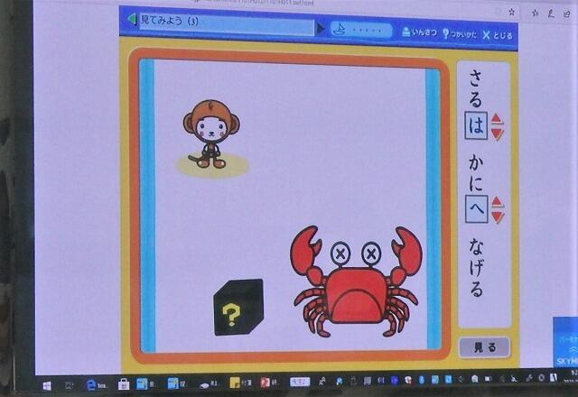 アニメーションを活用して、「は」「へ」「を」の使い方を確認しました。