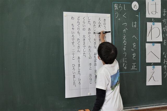 さっそく、まちがってつかわれている「わ」「え」「お」を正しく「は」「へ」「を」になおしました。