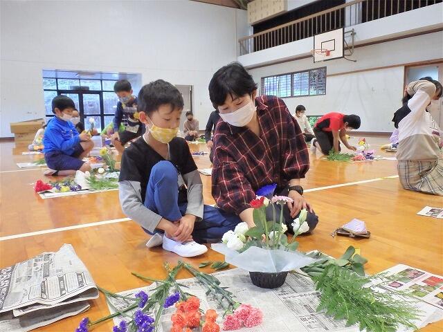 2年生の児童の作品です。 すてきなアレンジメントフラワーの完成です。