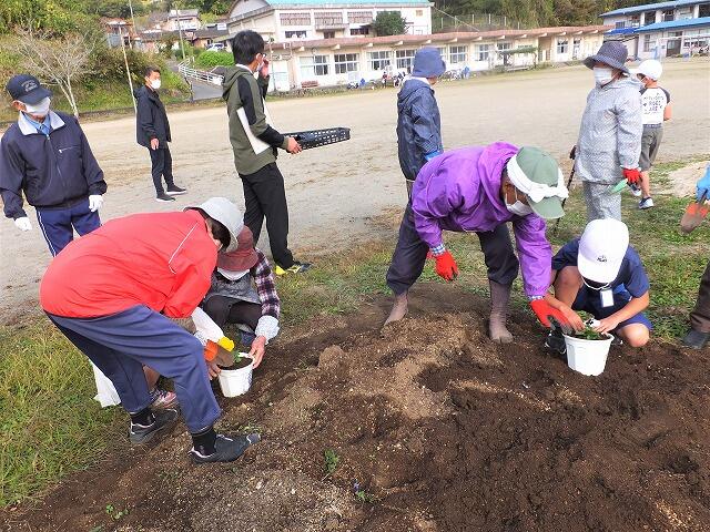 校長先生も地域の方々や田原っ子たちと一緒に、花いっぱい活動を行いました。