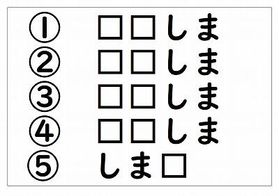 5年生への挑戦状です。①~⑤の都道府県名を漢字で書きましょう。