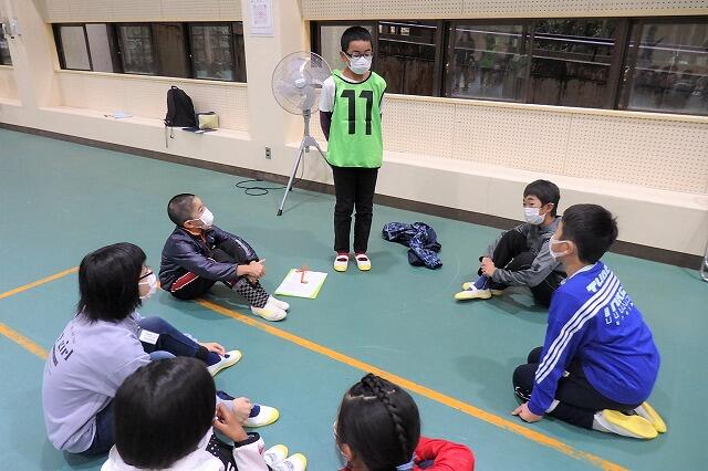 体育委員が、活動の内容を説明します。今回は、「じゃんけん全力疾走」です。