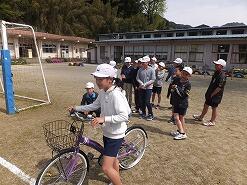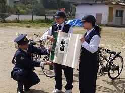 講師に交通安全協会及び河内駐在所の方々を招き、安全な道路歩行の仕方や自転車の乗り方などを学びました。
